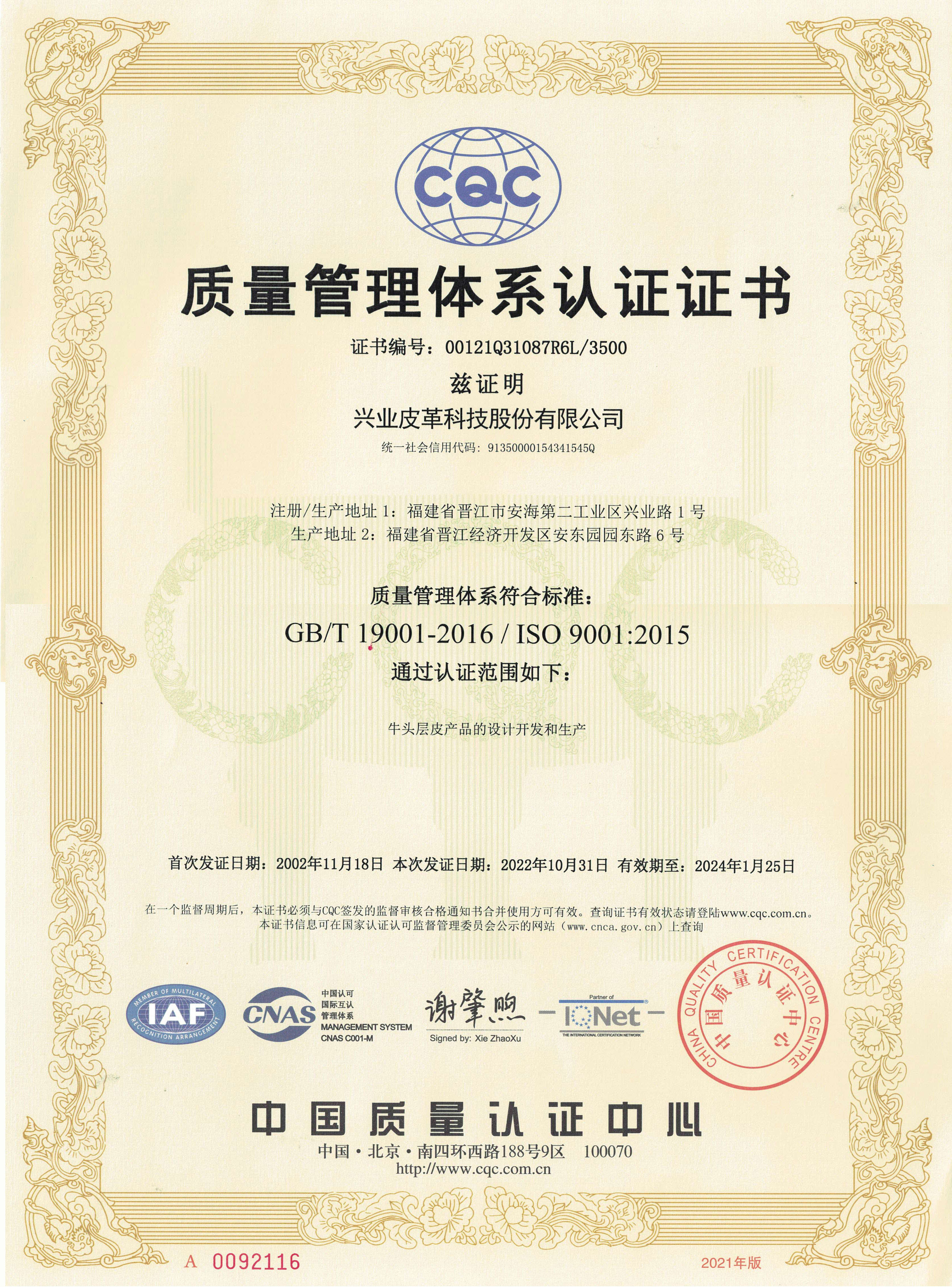 兴业皮革科技股份有限公司成立于1992年,2006年起成为世界制革技术权威组织SATRA的正式成员,并成为“高新技术企业”;2012年成为中国天然皮革鞣制行业A股上市公司(深交所上市,代码002674);2014年顺利通过英国皮革科研及技术中心BLC金牌认证。