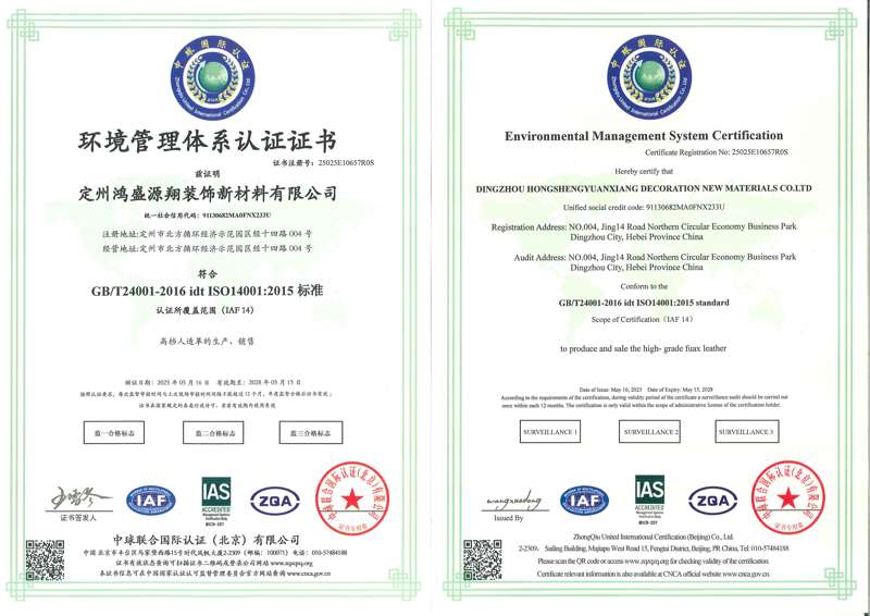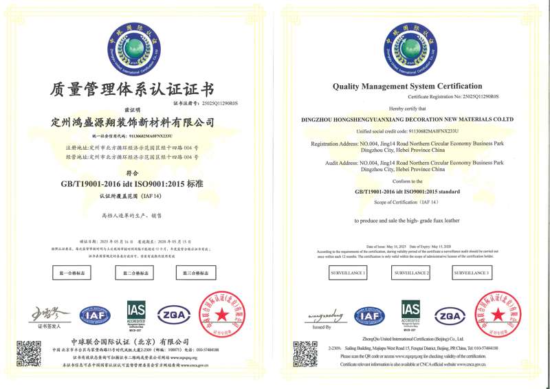 鸿盛源翔装饰新材料有限公司是一家集客户来样定制、自主研发、生产销售于一体的皮革制造企业,主要生产汽车革、家具装饰革、体育用品革、箱包革、鞋革等中高档皮革,公司位于河北省定州市北方循环经济示范园区,项目总投资1.6亿元,年产人造革4000万平方米。