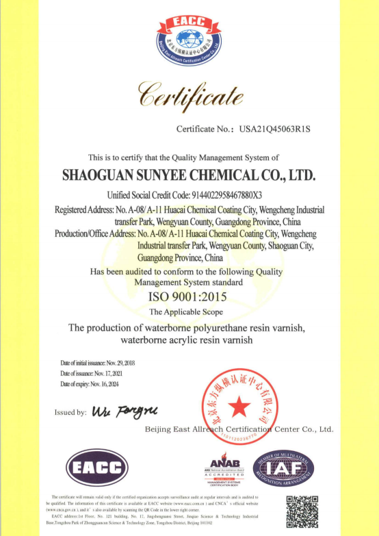 公司集水性皮革表处剂定制、研发、生产、销售和服务等为一体的新型化工企业。韶关新悦化工有限公司为企业生产基地,占地60亩,具有标准生产厂房、物料仓储车间及研发实验室等。为满足客户不断的需求、技术创新以及产品品质稳定,公司部署垂直整合的经营模式,建立了完善的质量保证体系和“一站式”供应链管理体系。产品主体材料,实现自主研发和合成生产供应,满足客户产品定制和各种性能要求。