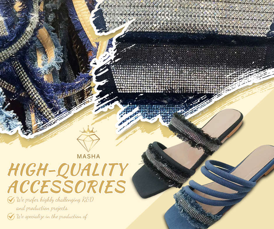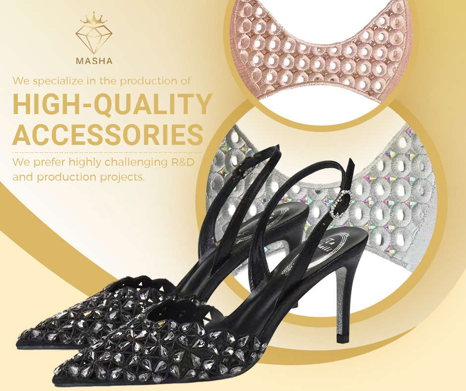 广州玛纱贸易有限公司,Masha专注于鞋类配饰的设计、开发和制造,总部设在中国广州,成立于2009年。我们的公司有着悠久的发展历史,我们已经拥有了一个庞大的高质量工厂网络,它们作为我们的合作伙伴和供应商。我们多样化的产品范围专注于鞋类配饰。