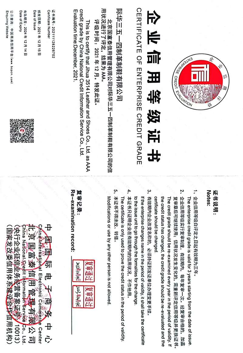 公司多年来坚持“在学习中成长,在创新中发展”的企业核心理念,秉承“互利共赢、同创共享”的企业价值观,发扬持续学习、持续改进、持续创新、持续提升的工作作风,获得了社会各界的广泛认可。2015年被阅兵联合指挥部授予“纪念中国人民抗日战争暨世界反法西斯战争胜利70周年阅兵保障贡献突出企业”,3514公司“神行太保”牌皮鞋被中国皮革协会评为“中国真皮鞋王”,“神行太保”商标被国家工商总局认定为“中国驰名商标”。公司当前是国家知识产权示范企业、国家知识产权优势企业、高新技术企业、绿色工厂,河北省消费品工业个性化定制试点示范企业、绿色工厂、创新型中小企业、专精特新中小企业,更是连续多年被评为河北省“守合同重信用企业”、“河北省诚信企业”、“河北省轻工业优秀企业”。检测中心成功通过CNAS实验室认证,认可的检测范围涵盖鞋的耐磨性能、耐折性能、剥离强度等五个方面。