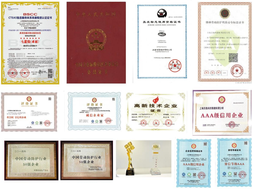 上海百集科技集团有限公司,公司坐落于上海市宝山区上海机器人产业园富联二路189号23号楼,是一家专业从事鞋类产品设计、研发、销售为一体的生产型企业,已获得多项发明专利、特种劳动防护用品安全标志证书共 20 多项,连续五年荣获“中国劳动防护行业 50强企业”称号,纳税百强企业称号,国家高新企业认证,成为上海市专精特新中小企业,是多个安全鞋国家标准起草单位之一。公司主要生产机关行政单位工作鞋、多功能安全鞋,具有保护足趾、防水、防静电、电绝缘、防刺穿、耐酸碱、耐油、耐高温、防滑、透气、耐磨、减震等多种功能。长期以来,公司秉承“专注、专业、安全”的公司理念,针对不同的作业环境,不同场合的需求,潜心研发出多款高品质产品,生产出集“安全、舒适、时尚于一体的多功能安全鞋,优良的品质和良好的信誉赢得了海内外上万家企业的青睐和认可。一个追逐安防鞋业的创新者,一个对安全防护满怀热忱的使命者,百集与世界同步,争做安全防护用品行业领跑者!