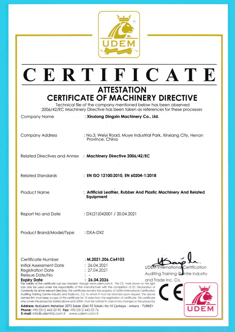 公司成立于2003年,位于河南省新乡市,距新郑国际机场90公里,新乡高铁站4公里,紧临107国道、菏宝高速和京港澳高速公路,交通便利。质量是品牌持续增长之源——公司始终以“诚信务实,创新进取”为座右铭,产品通过了ISO9001国际质量管理体系认证和欧盟CE认证,拥有国家专利59项,其中发明专利9项。公司致力于涂覆法PVC运动地板、PVC同质透心地板、PU/PVC人造革、PU合成革、PU移膜革、PVC防水卷材和压延法PVC商务地板、PVC人造革等成套生产装备的研发、制造和销售服务,是河南省“高新技术”、“专精特新”企业,经批准成立“新乡市橡塑机械工程技术研究中心”。