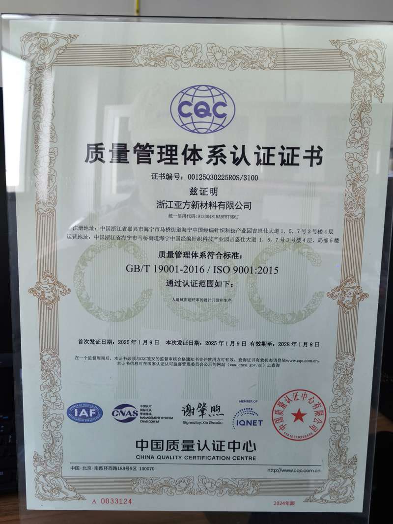 浙江亚方新材料有限公司是一家成立于2022年9月 ,集研发、生产和 销售高性能合成纤维面料于一体的现代化企业。公司生产的高性能合成纤 维面料集柔软性佳、色泽饱满丰富、耐用耐磨性强、极易保养等优点于一 身。产品广泛应用于汽车内饰、家具用品、时尚服装、高端箱包。公司将 持续提高自主研发能力 ,积极开拓国内外市场 ,进一步完善销售服务体系, 致力于成为一家引领时尚品质生活的创新型企业。