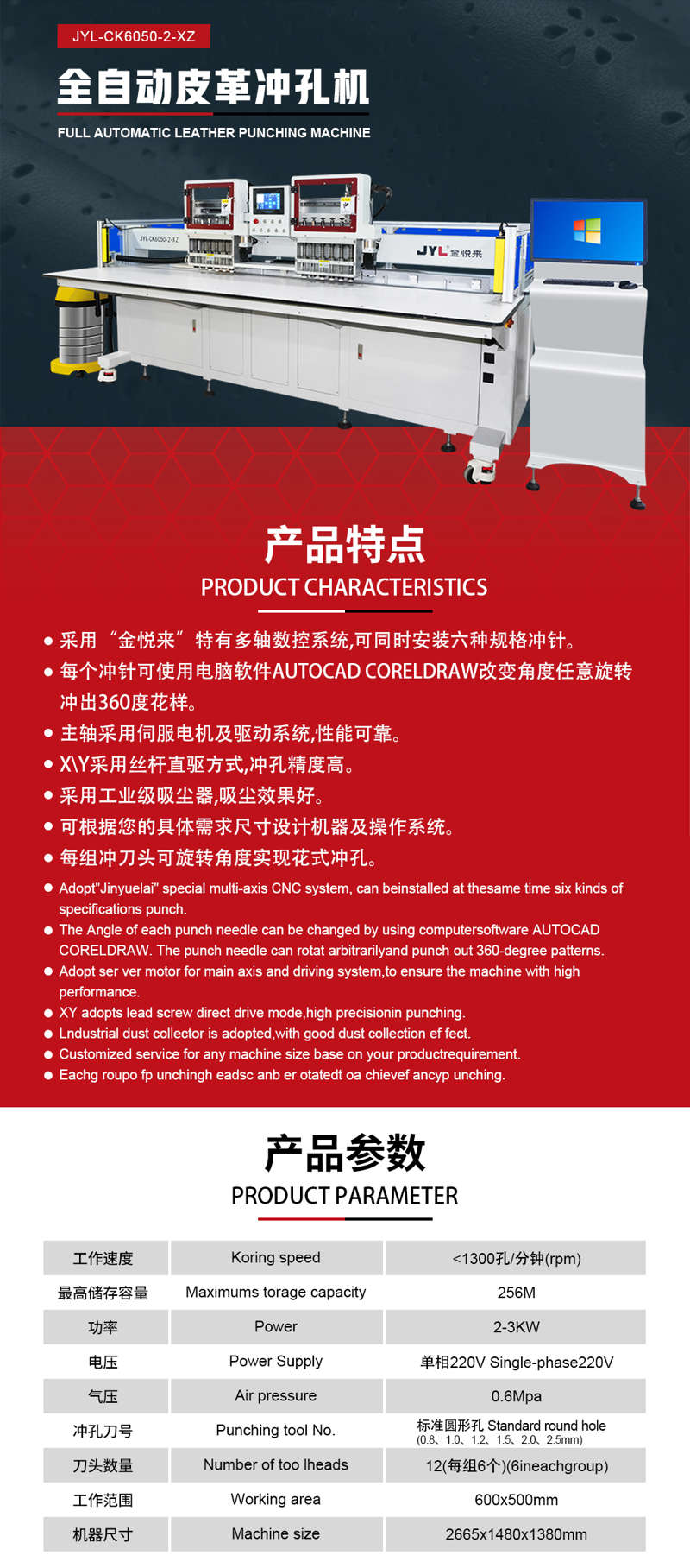 全自动皮革冲孔机 JYL-CK6050-2-XZ