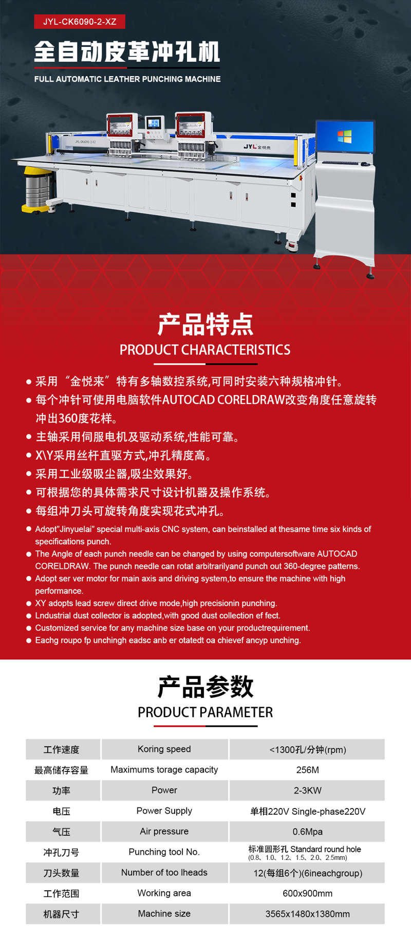 全自动皮革冲孔机 JYL-CK6090-2-XZ