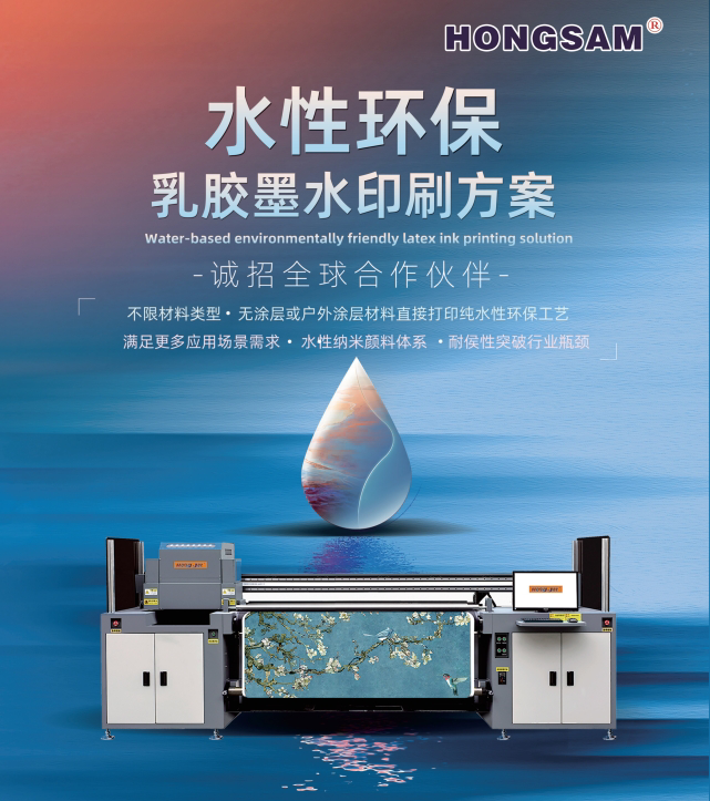 Hongse Digital's Hongjie HJ-1808L Latex Printer features a mesh belt suction printing system combined with high-quality linear guides and motor configurations. It adapts to various material characteristics, including thickness variations, softness/hardness, and high elasticity, providing an eco-friendly and high-value-added printing solution for diverse leather materials.